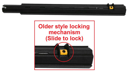 The extension tubes are plastic rods that can be inserted separately or together to add length to the hose. Brushes can be attached to the end of the extension tube and locked into place with the locking latches. (For OLDER KleenJet® steam cleaners with a slide-to-lock mechanism for the attachments)