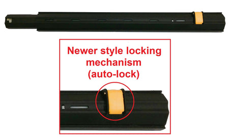The extension tubes are rods made from durable plastic, capable of standing up to extensive use. They can be inserted separately for a short additional length or together for optimal length. Brushes can be attached to the end of the extension tubes and locked into place with the locking latches. The extension tubes can be used with all NEWER KleenJet® models with the new yellow locking tab where the accessories automatically lock into place. If you have the older style "slide to lock" mechanism where you manually have to lock the attachments together, this will not work!
